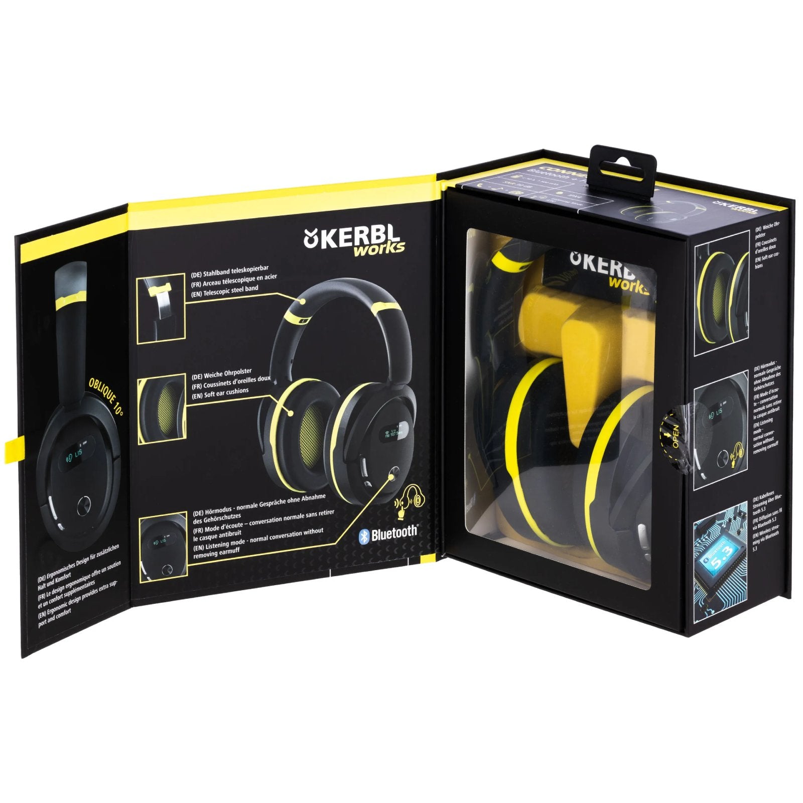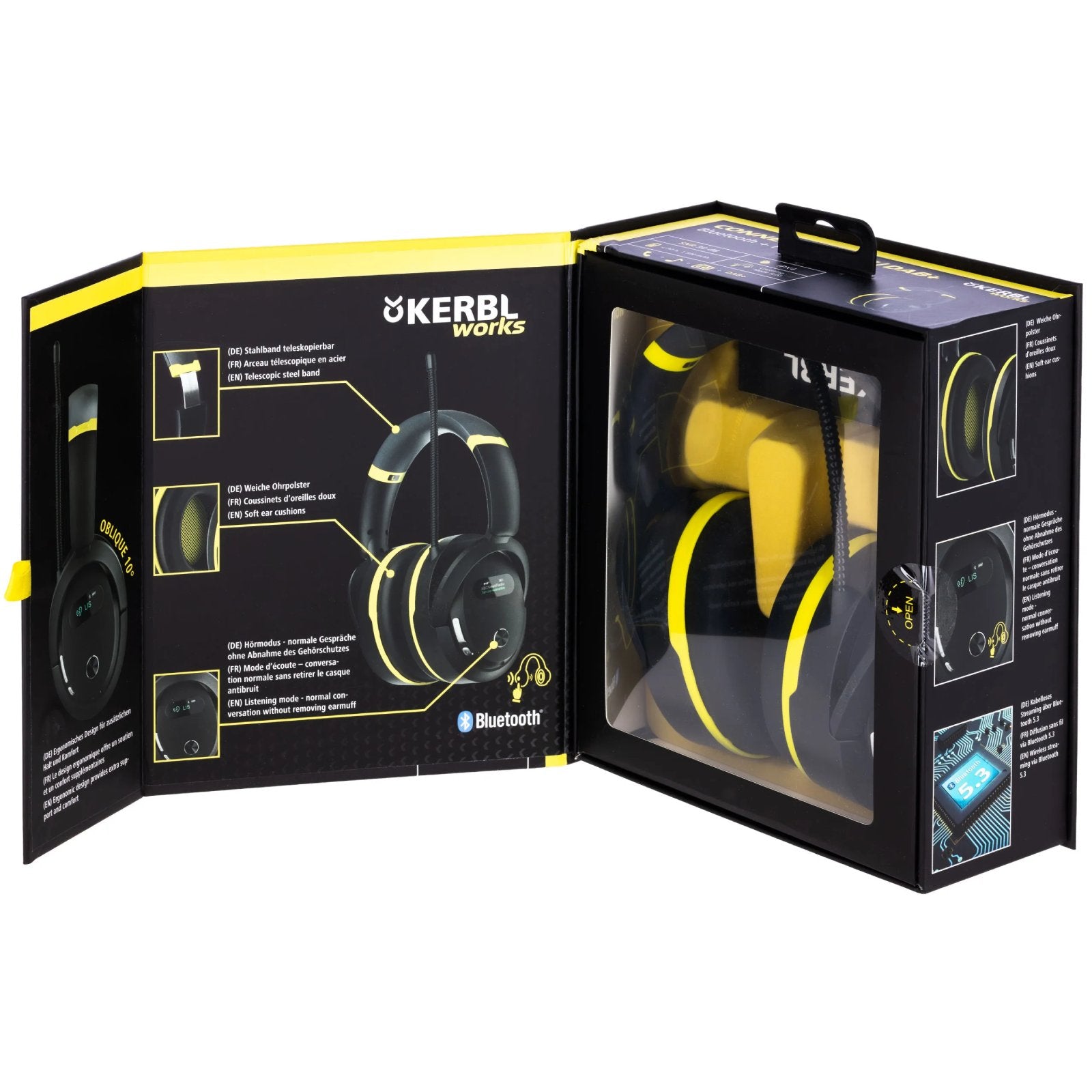 Hörselskyddet kan enkelt kopplas till din smartphone via Bluetooth, vilket gör det möjligt att lyssna på musik, poddar eller ta samtal utan att avbryta arbetet. Den integrerade medhörningsfunktionen (listening mode) gör att du kan höra omgivningsljud och föra samtal utan att behöva ta av dig skyddet.