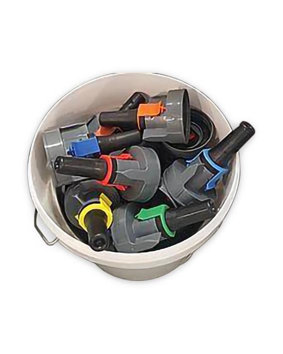10-p klip og bakke i 10 forskellige farver. Farverne gør det nemmere for hver kalv at holde sin egen sut. Du sætter et farvemærke på kalvehytten og har samme farve på clipsen over sutten.
