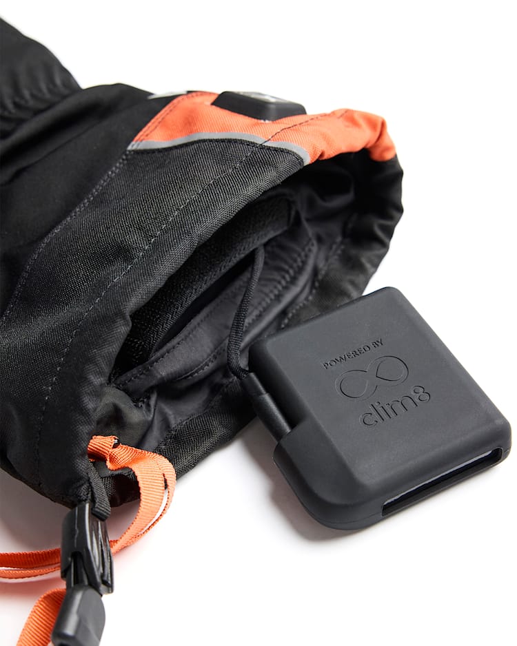 Clim8® Intelligent Heating: Systemet aktiveras automatiskt när du tar på dig handsken. Justera värmen i tre nivåer via en knapp med tydlig indikatorlampa.