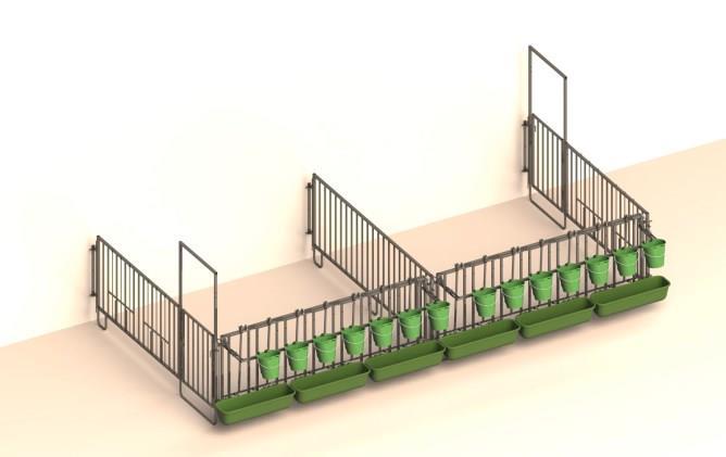 Setti 5 vasikkaalle Sisältää: 2 x seinäkiinnike, 1 x pitkä aitaosa portilla, 1 x pitkä aitaosa, 1 x 7-osainen turvaristikko.