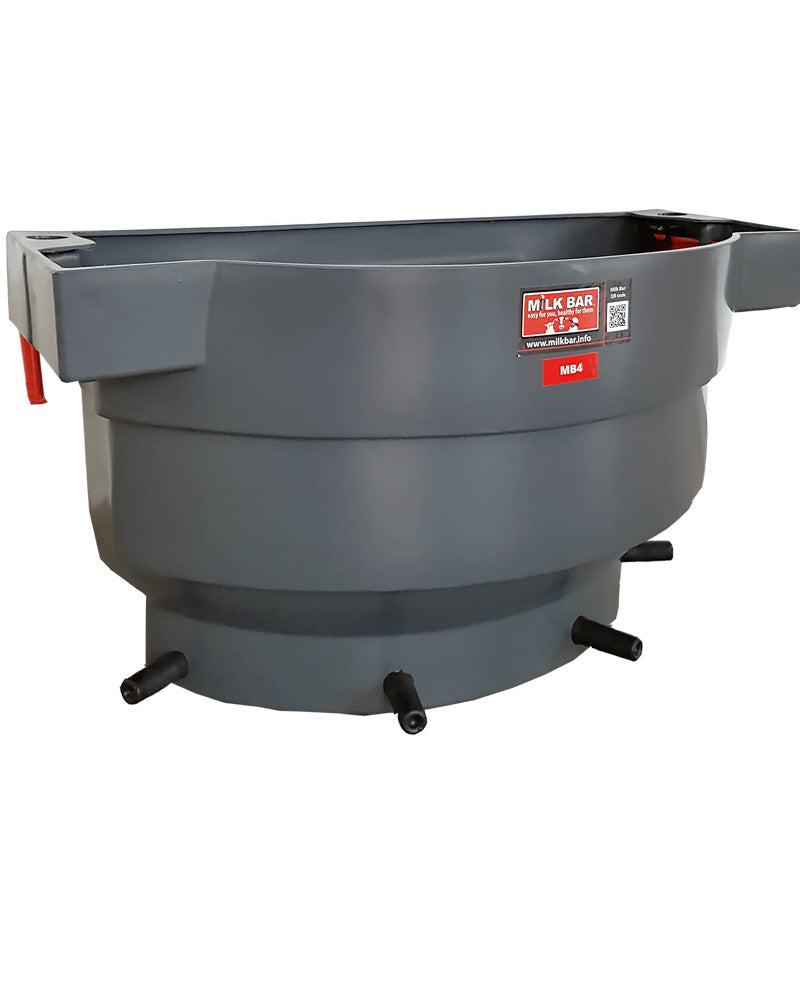 36 litran suuri 9 litran vetimen tilavuus ja erittäin leveä 19 cm:n vetimen välinen etäisyys tekevät Milk Bar™ 4:stä erittäin monipuolisen ja ihanteellisen suuren tilavuuden järjestelmiin, pidempiin maidonsyöttöjärjestelmiin ja suuriin rotuihin.