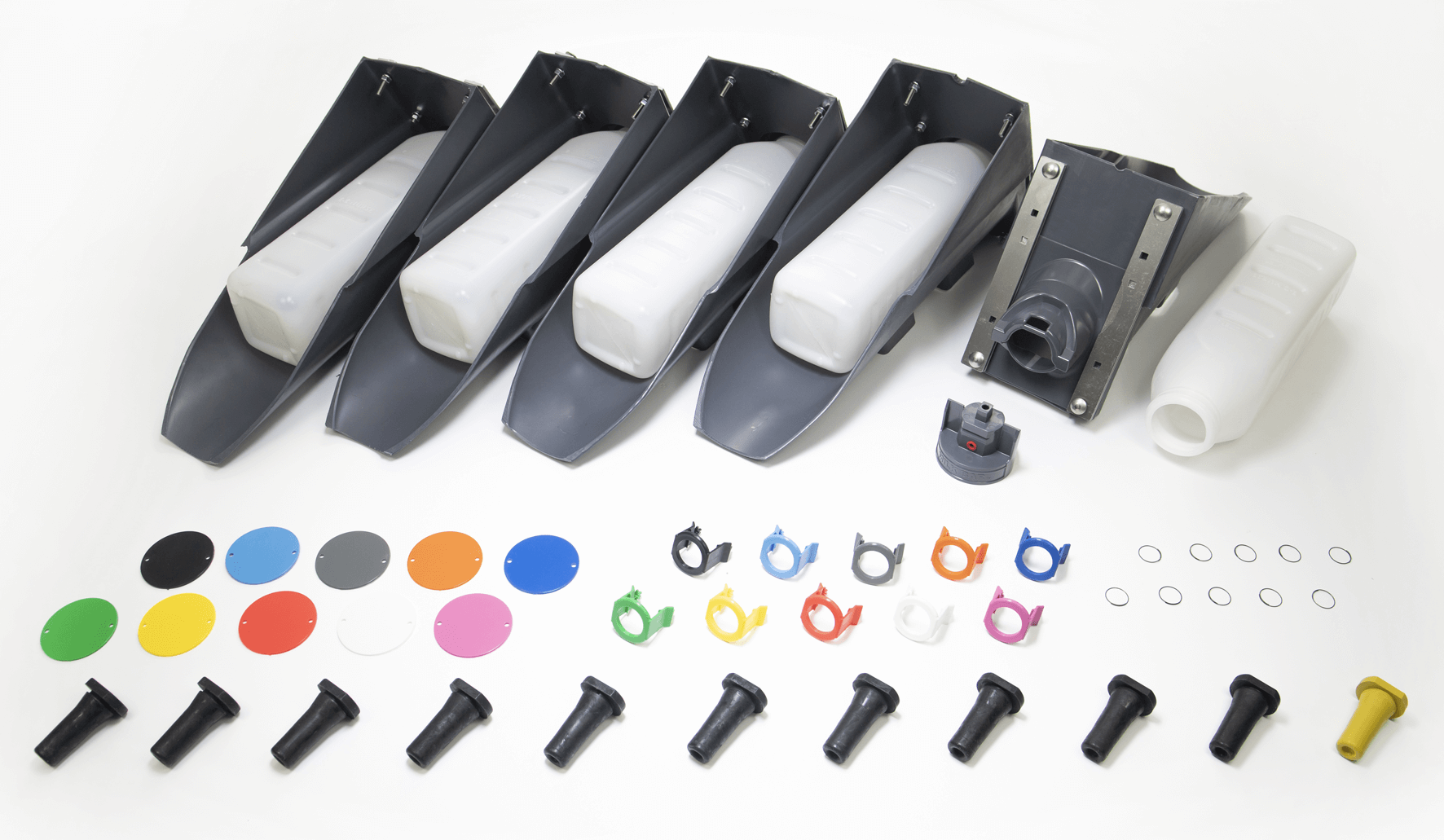 Saatavilla on ylimääräisiä Milk Bar™ -tutteja ja värillisiä tuttipidikkeita, jos tarvitset niitä. Kun asennat maatilaasi, salli yksi pullo per kota, esimerkiksi 10 mökkiä = kaksi pakkausta Vitality System -järjestelmää.