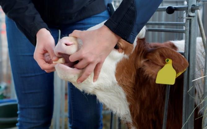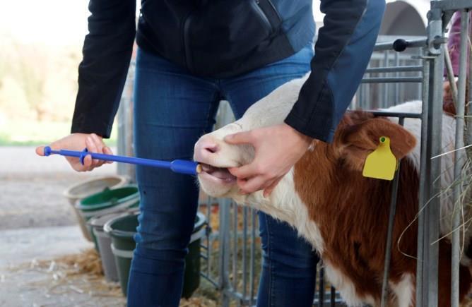 - Placera helt enkelt bolusen med handen på längden på basen av tungan. Kalven sväljer bolusen utan problem