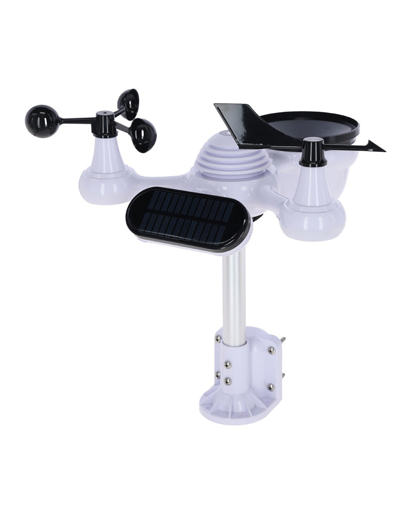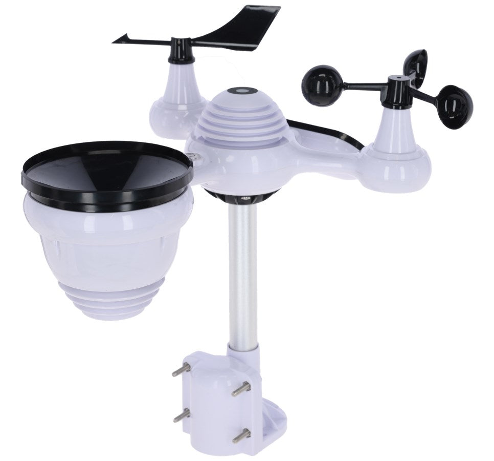 För mätning av temperatur, luftfuktighet, regn, vindhastighet och riktning, UV-index, lufttryck och daggpunkt