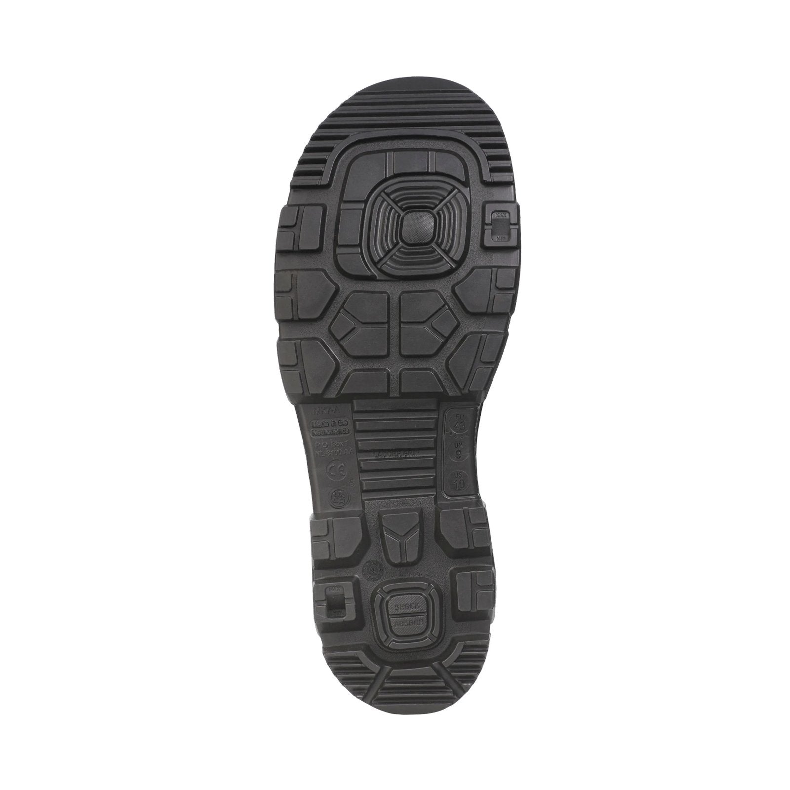 Modellen är certifierad enligt EN ISO 20345:2011 S5 CI CR SRC. Det innebär att stöveln är en S5-säkerhetsstövel med stålhätta, genomtrampskydd, köldisolering och SRC-testat halkgrepp. Modellen har stålskydd i tå och mellansula.