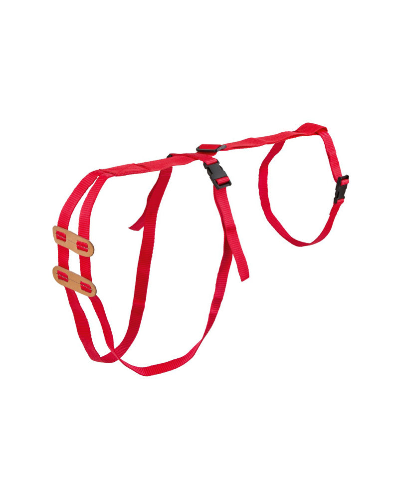 - Polyamidbälte med klämfäste och mjuka läderinlägg.