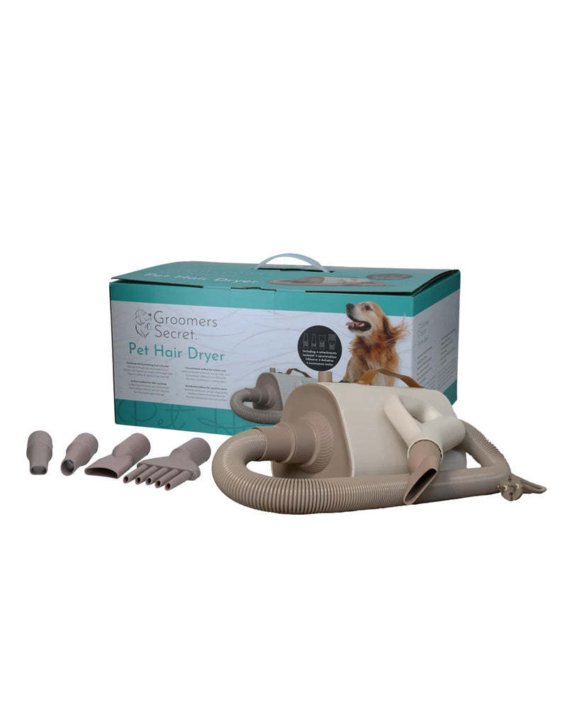 Groomers Secret är en kraftfull och mångsidig hundfön (även kallad "blaster") designad för att effektivt torka, rengöra och vårda pälsen på alla hundraser.