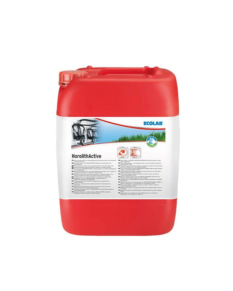 Horolith Active är ett högpresterande, surt rengöringsmedel från Ecolab, speciellt framtaget för diskning av mjölkningsanläggningar och mjölktankar. Genom sin unika "Active-teknologi" kombinerar produkten kraftfull kalklösning med oxiderande egenskaper, vilket säkerställer en hygienisk standard i toppklass samtidigt som vattenförbrukningen optimeras.