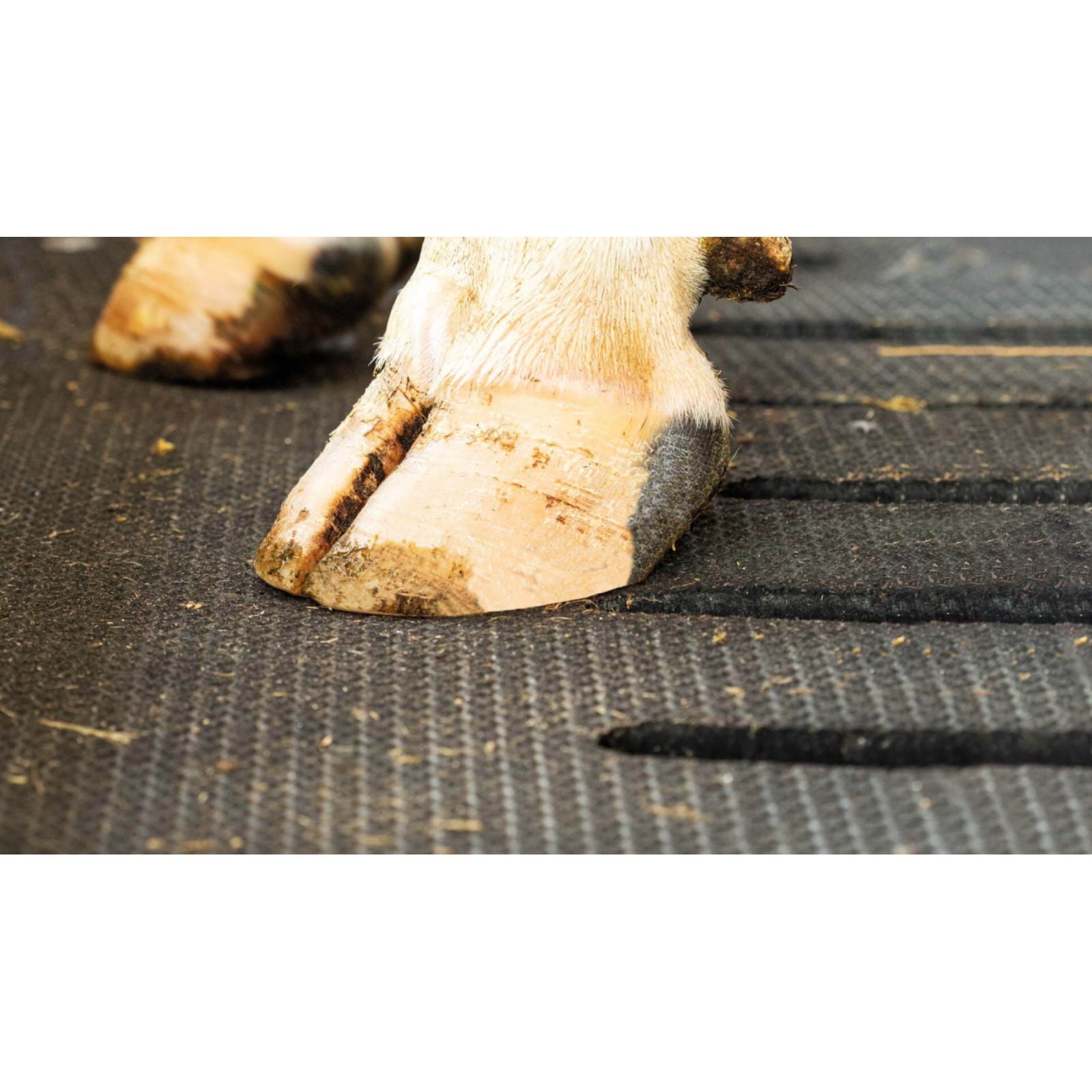 Den slitstarka korundytan ger mycket högt grepp och jämn klövabrasion – särskilt värdefullt i mjölkstall där smetlager lätt kan bildas när gödsel torkar.