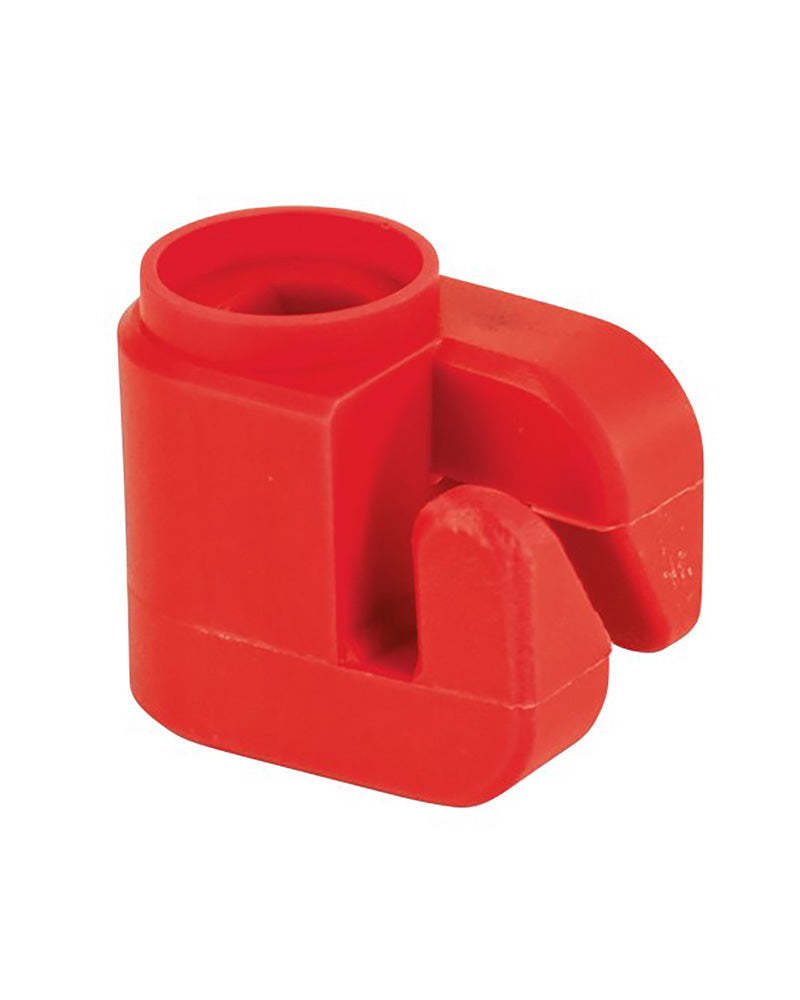 Röd reservisolator i plast för oval fjäderstålstålpe.