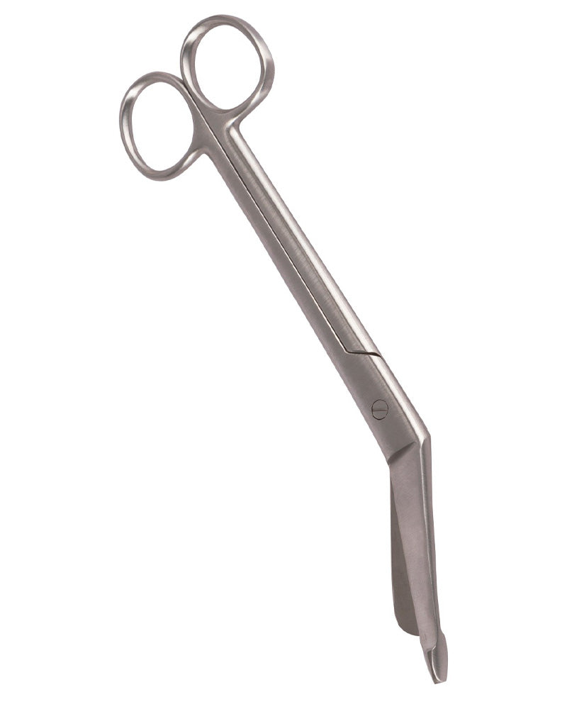 Typisk vinkel på bladen i förhållande till handtaget för särskilt enkel hantering och hållning av bandagesaxen