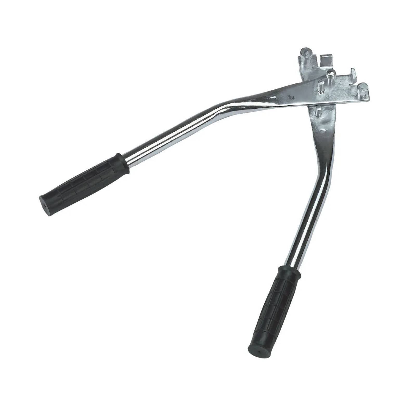 Tång för applicering av antisjälvmjölkare i metall med plasthandtag.